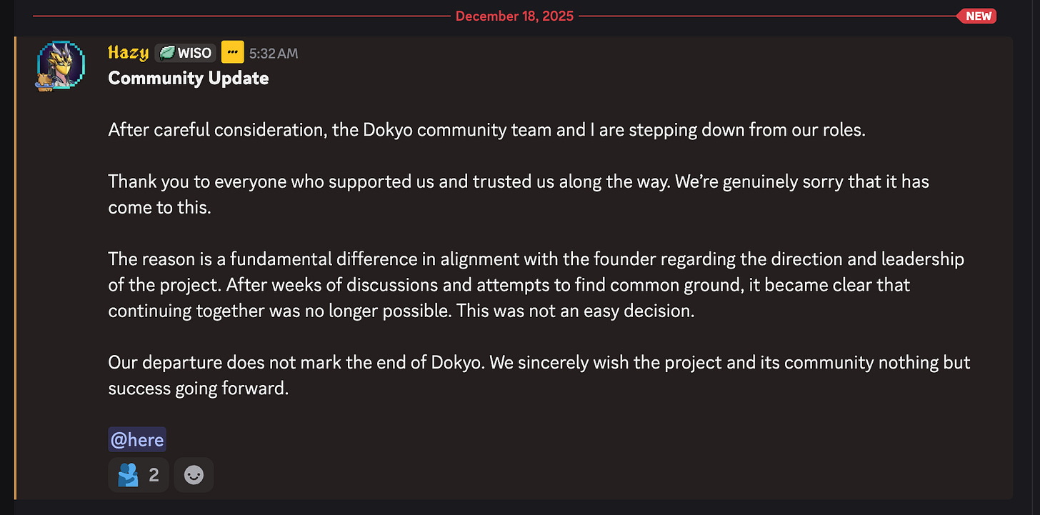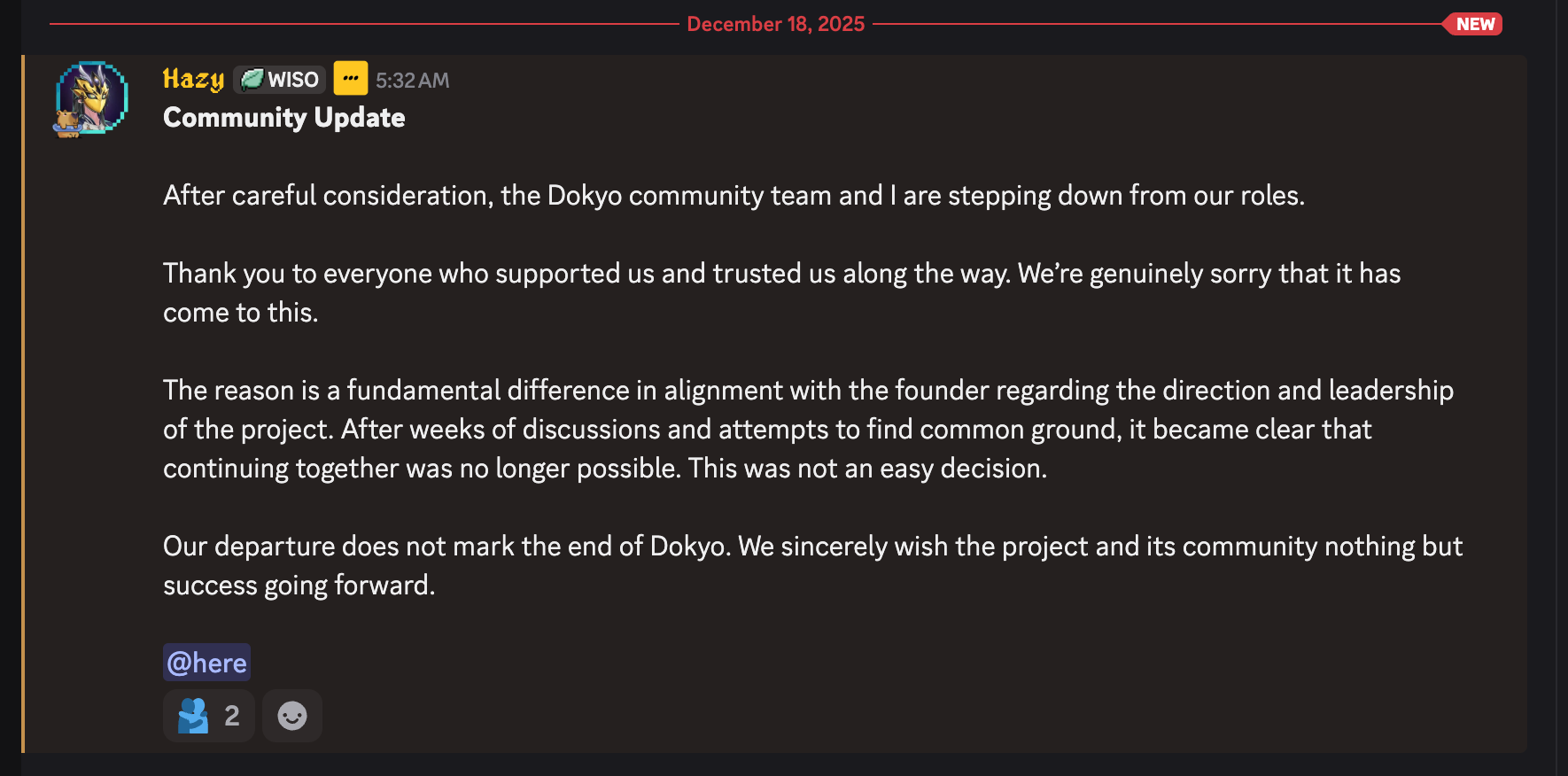 Uh oh again! Dokyo team is quitting due to “differences in alignment!”