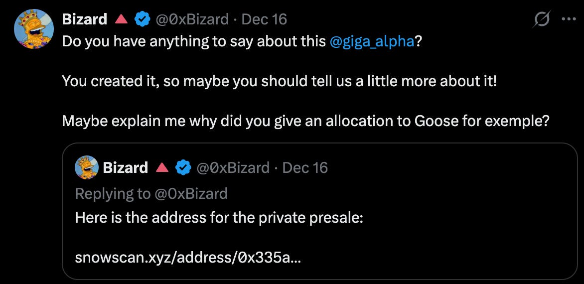 The “private presale” was small—it was a paid salmon allocation for some of Giga and Smoothies’ friends. I think that’s pretty reasonable. Maybe he gave access to more people than I would have, but not by much. Every coin has things like this, it’s just something you need to learn to accept. Moving on!