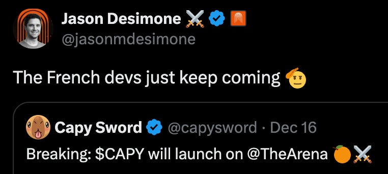 I’ll be honest I haven’t had a ton of time to follow this one closely, but it seems like they have a game or something and are more developed than just a memecoin. Personally, as you might have gleaned from reading this article, I don’t spend much time on Arena so this launch has mostly gone over my head.