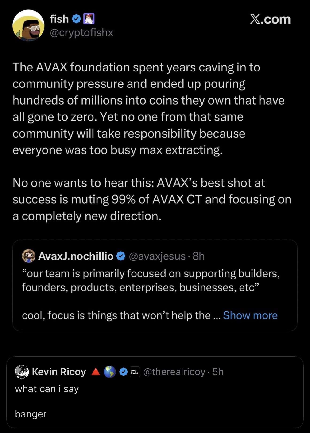 Again, this is a problem that I believe can be solved fairly easily. The prevailing sentiment from Ava Labs employees is that the community will fud everything they do no matter what. I don’t think that’s true—the community just doesn’t feel seen or heard at all.
