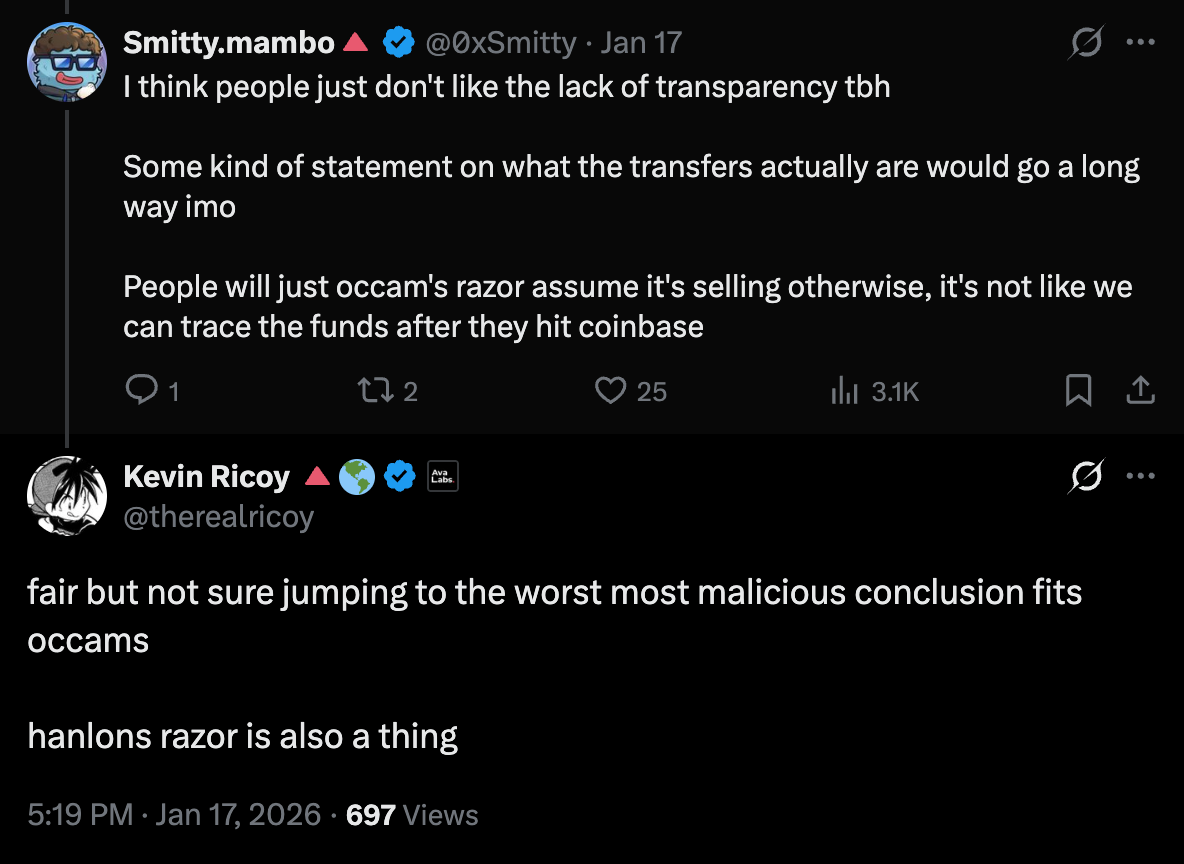 Anyway, the FDN doesn’t have a responsibility to explain to us what is happening, but they should also not be surprised that people have latched on to the “30M to Coinbase” meme so tightly. If you want to be silent on it that’s fine, but these are the consequences.