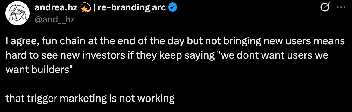 Yes, they have not literally said “we don’t want users” as that would be an INSANE thing to put in writing, but they’ve made it clear over, and over, and over again that they are not focused on the onchain ecosystem.