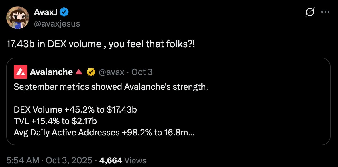Ava Labs continues to hammer home the “record setting” transaction counts and DEX volume on chain. I assume this must be an attempt to pump numbers for future institutional partners, as anyone actually using the chain can see that these numbers are completely manufactured.