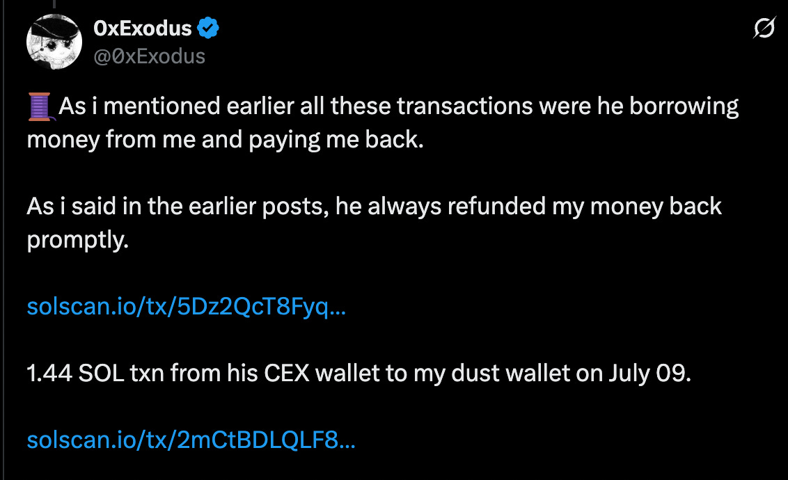 Exodus then defended himself by saying that Kairon was actually just a friend who he loaned 80 AVAX to over a few months. Side note: Exodus, I’ll write nice things in the next article in exchange for friendship status. Happy to receive an 80 AVAX loan!